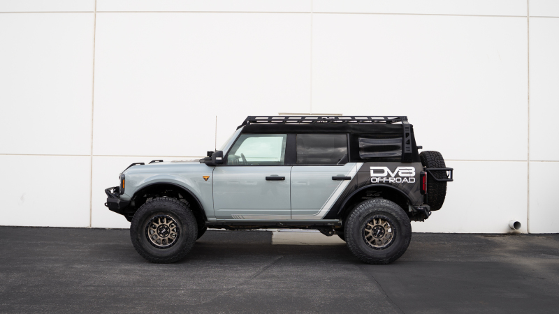 The new Broncos are known to have a visibly unfinished pinch weld on those models not running factory or aftermarket sliders. We?ve designed a powder coated steel cover to clean up and finish out the look of the bottom edge of the body. Adding a unique touch, the Bronco?s body color shows through the DV8 logo cutout towards the back end. Installation is a quick and easy process, with a fully bolt-on installation.