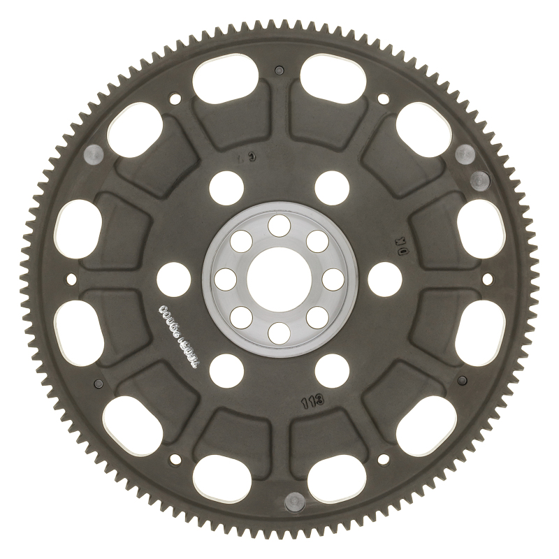 Exedy flywheels combine low weight, low inertia and high thermal capacity. They are designed for lightly tuned racing cars and drag racing, autocross and rally events, as well as street usage. They are made from solid one-piece billet chromoly steel or chromoly steel forgings. They are specifically designed to reduce weight and inertia for better engine response. Most incorporate special design features to enhance airflow and cooling of the clutch. The ring gear teeth are integrated onto the flywheel unlike an aluminum flywheel where the ring gear is pressed onto the flywheel and has the possibility of separating due to different expansion coefficients of aluminum vs. steel. Exedy steel billet and forged steel flywheels have passed engineering tests to 15,000-18,000 rpm and guaranteed not to fail to the said rpm and are all SFI approved.