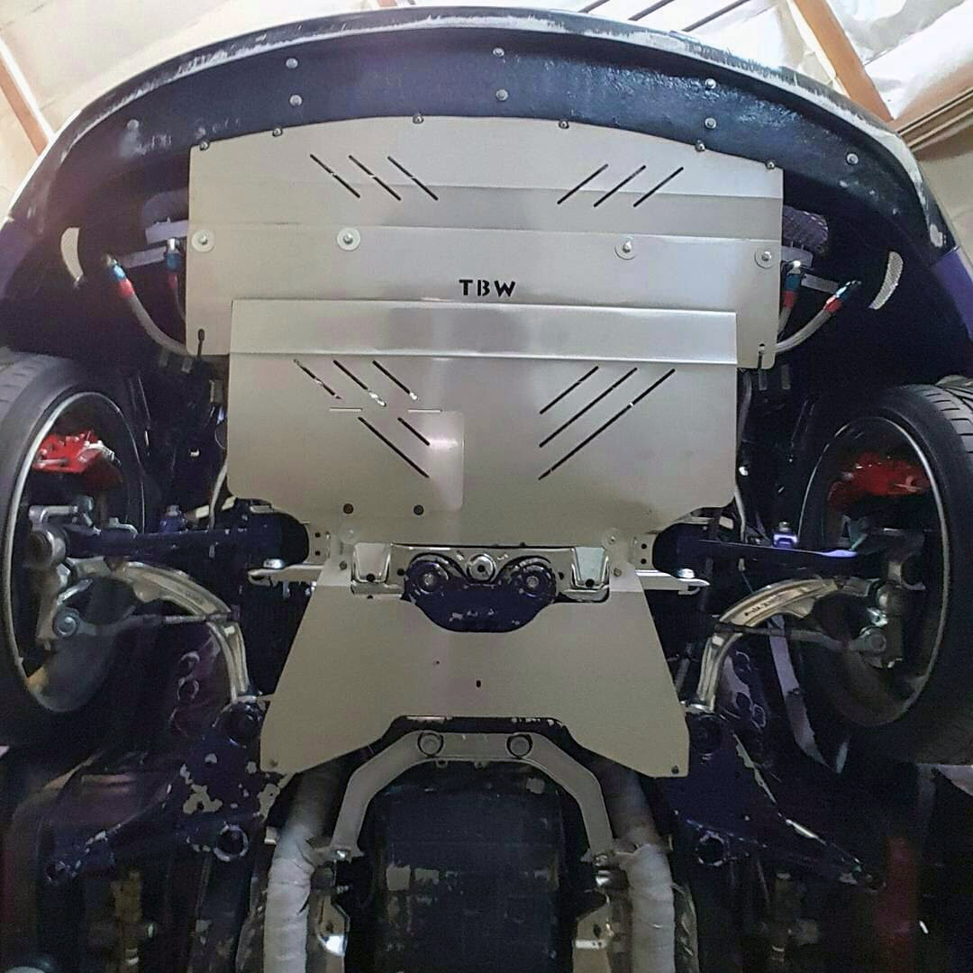 This bell house panel replaces the oem panel that is aft of the engine splash shield. It helps cover the M brace and keep air flow smooth under the car. Combined with the engine splash shield this helps keep the air smooth under the car but will not rip off and fall apart like the OEM plastic version.