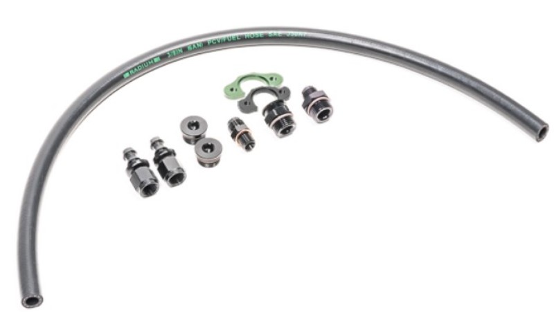 Fuel line plumbing kit for use with Radium fuel rail. Includes fittings, hose and adpaters for an easy bolt-in installation of the Radium 20-0533 fuel rail. Includes parts to re-use the OEM fuel pressure regulator.