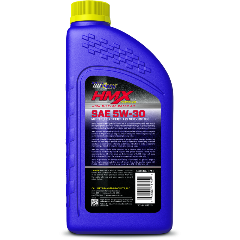 Product Description Specifications Royal Purple HMX Premium Synthetic High Mileage 5W-30 Motor Oil - 1 Quart MPN: 11745 Clearance Item: N
