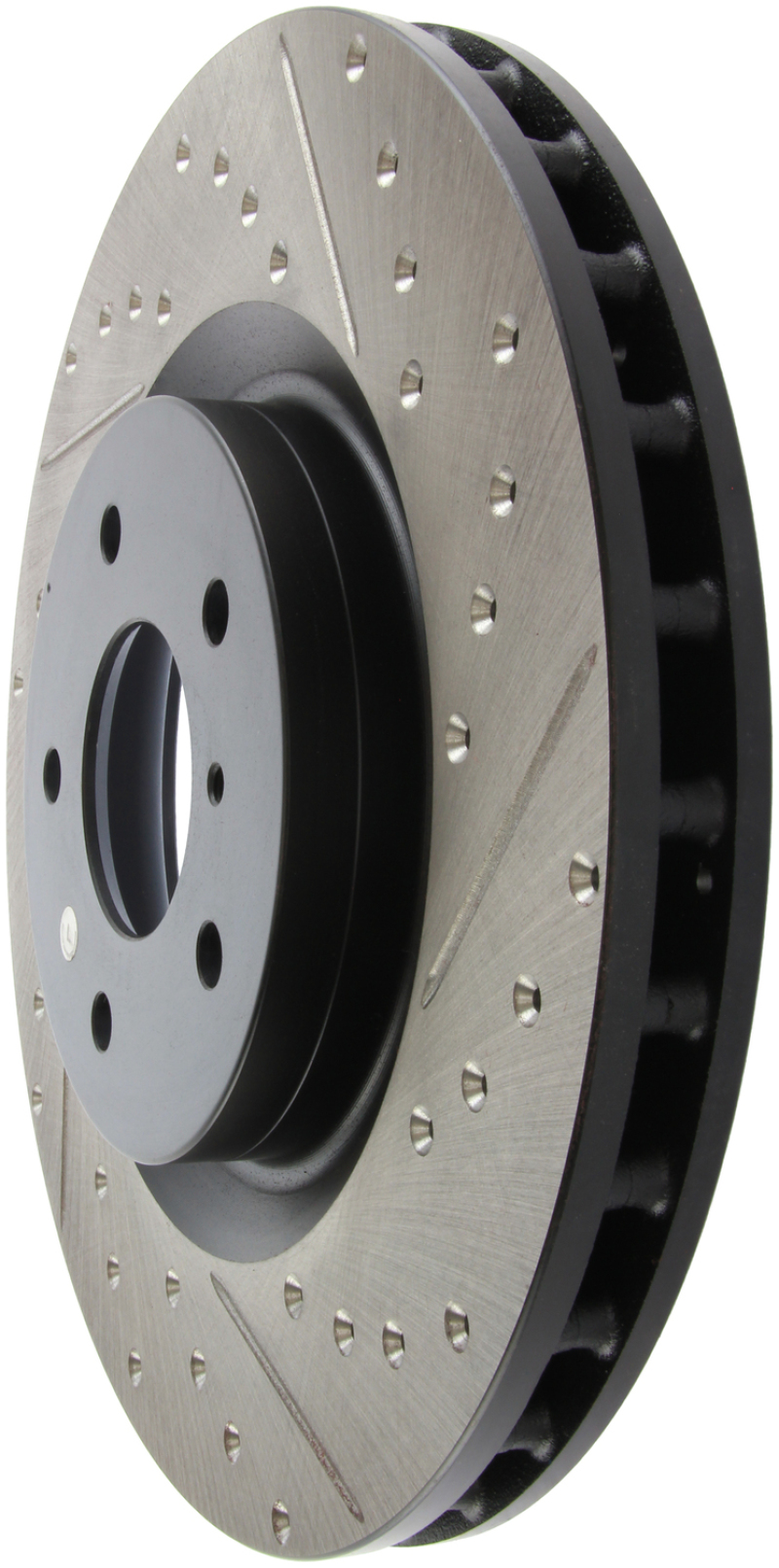 StopTech Drilled and Slotted Sport Rotors are 1-piece direct replacement brake discs for factory brake systems and stock calipers that look great behind your wheels – and offer significantly improved braking performance. The unique cross-drilling and slotting aids with heat and brake dust dispersal; prevents glazing of the pads; adds bite and improves wet and dry braking performance. Built to last; the black e-coating provides protection from corrosion and the high carbon metallurgy (in most applications) offers quieter operation; better crack resistance and increased performance.