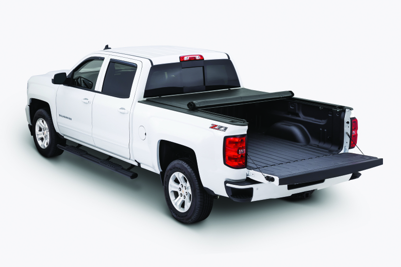 The Tonno Pro Lo-Roll Vinyl Tonneau Cover is a soft-rolling truck bed cover that provides you full access to your truck bed while ensuring great security and protection from the elements. The double-sided vinyl top is tear-resistant with marine-grade stitching. Lo-Roll provides you the security and functionality you need from a truck bed cover, combined with a low-profile appearance and stylish looks. Operation of this truck bed cover is a breeze, unlock at the driver side of the tailgate, roll to the cab and securely fasten. When rolled up to the cab, you have full truck bed access making hauling large cargo simple. Another great benefit from the Lo-Roll rolling truck be cover is that it is mounted inside the bed rails providing access for mounting any of your other favorite accessories. No-drill, quick and easy installation.