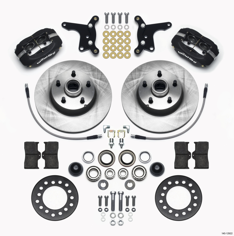 Wilwood's Classic Series front disc brake kits for Ford vehicles (including Thunderbird) from 1954 to 1956, offer disc brake upgrade solutions for OEM Drum spindles. A completely new kit design, featuring an 11.28" x 1.00” rotor and hub assembly. Based on the venerable forged billet Dynalite caliper, these versatile kits are easily optioned to suit the braking requirements and style preferences for a daily driver or the most discriminating show enthusiast. Intended vehicle applications require no modifications for installation, and provide plenty of clearance inside popular 15" wheels. FDL 1 piece kits can be used with either manual or power boost master cylinders. Kits come complete with calipers, rotors and, hub assembly, brackets, hardware and line kit.